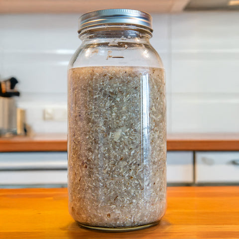 Our organic, premium Turkey Tail mushroom tincture is grown on-site in a controlled environment from inoculated sawdust, ensuring optimal quality and purity without environmental variability. Once ready, we craft the tinctures through a double extraction technique involving a full lunar-cycle alcohol soak followed by a hot water decoction. This dual extraction process is done for optimal extraction of both alcohol-soluble and water-soluble compounds. In other words, maximum extraction of available mushroom medicine.